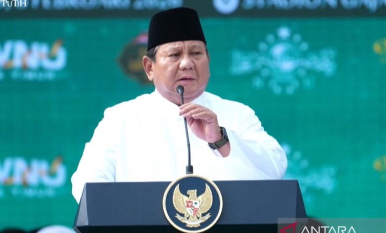 President Prabowo made the statement before more than 100,000 people gathered at the centenary celebration of Nahdlatul Ulama, one of Indonesia’s most prominent Islamic organizations, in Malang, East Java, on Sunday.