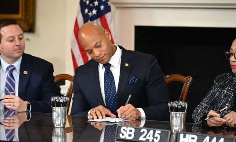 Moore was joined by Lieutenant Governor Aruna Miller, as well as Senate President Bill Ferguson and House Speaker Peña-Melnyk — both of whom must also sign the bills before they take effect.