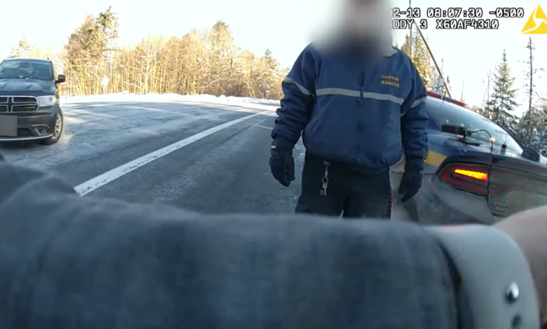 Trooper Bailey Martin, assigned to State Police in Malone, was outside her patrol vehicle speaking with another trooper when a gray SUV traveling east approached the intersection, body camera footage shows.
