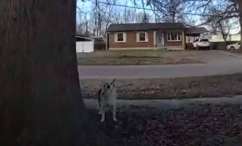 Officer Josh Thompson of the Louisville Metro Police Department’s 7th Division said that the search led officers through multiple yards before they encountered a barking dog that began following him.