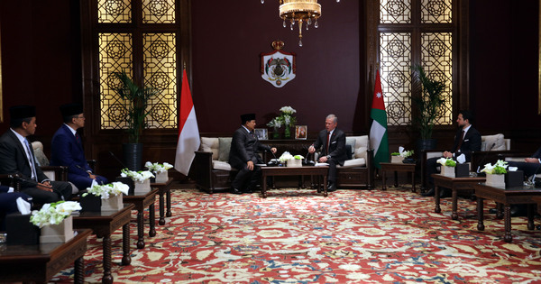 (260226) — AMMAN, Feb. 26, 2026 (Xinhua) — Jordan’s King Abdullah II (R, C) meets with visiting Indonesian President Prabowo Subianto (L, C) at the Basman Palace in Amman, Jordan, Feb. 25, 2026. Jordan’s King Abdullah II and visiting Indonesian President Prabowo Subianto on Wednesday stressed the need for dialogue to de-escalate regional tensions, calling for support for Syria and Lebanon’s sovereignty and a renewed