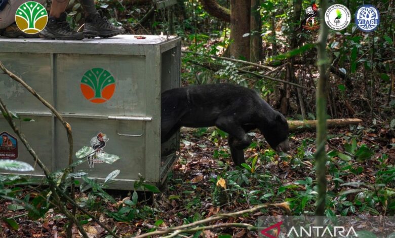 Malayan sun bear rescued from poacher trap released in W Kalimantan